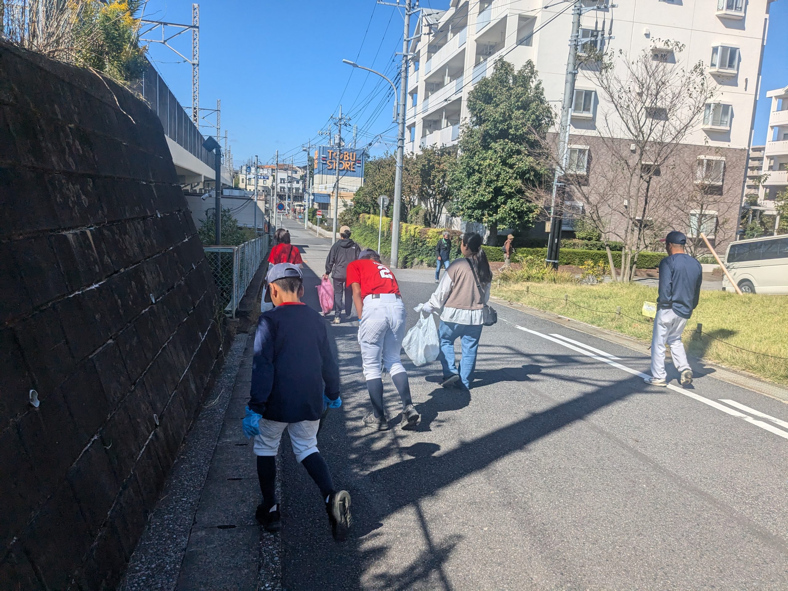 天気の良い本日は、午後からの活動でした。代表チーム部員は少し早めに集合して、3つのチームにわかれて、中原小近隣エリアのゴミ拾い活動をしました。