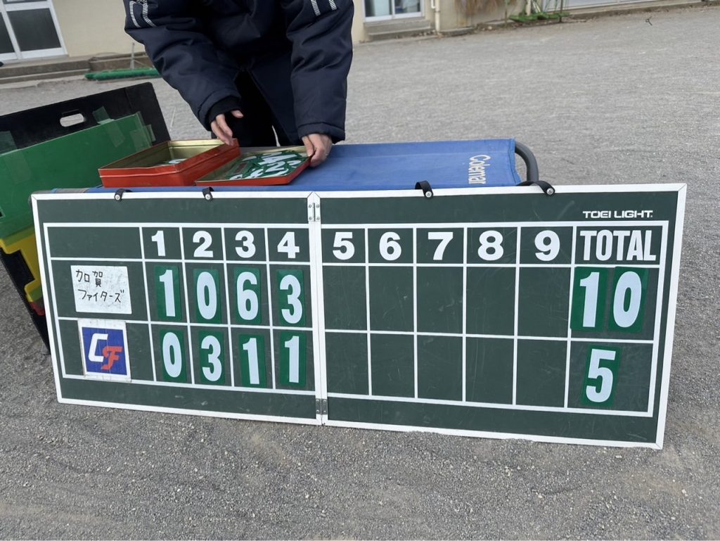 VS 千代田ファイターズ 練習試合(加賀ファイターズ) 試合結果 2024.12.22 18.2.2 10-5(勝ち) 今年最後の試合に無事勝利できてほっとしています。ただ相手は四年生主体のチームですのでこの結果ではまだまだかと。集中力や声が切れないようもっと試合を盛り上げていけたら思います。