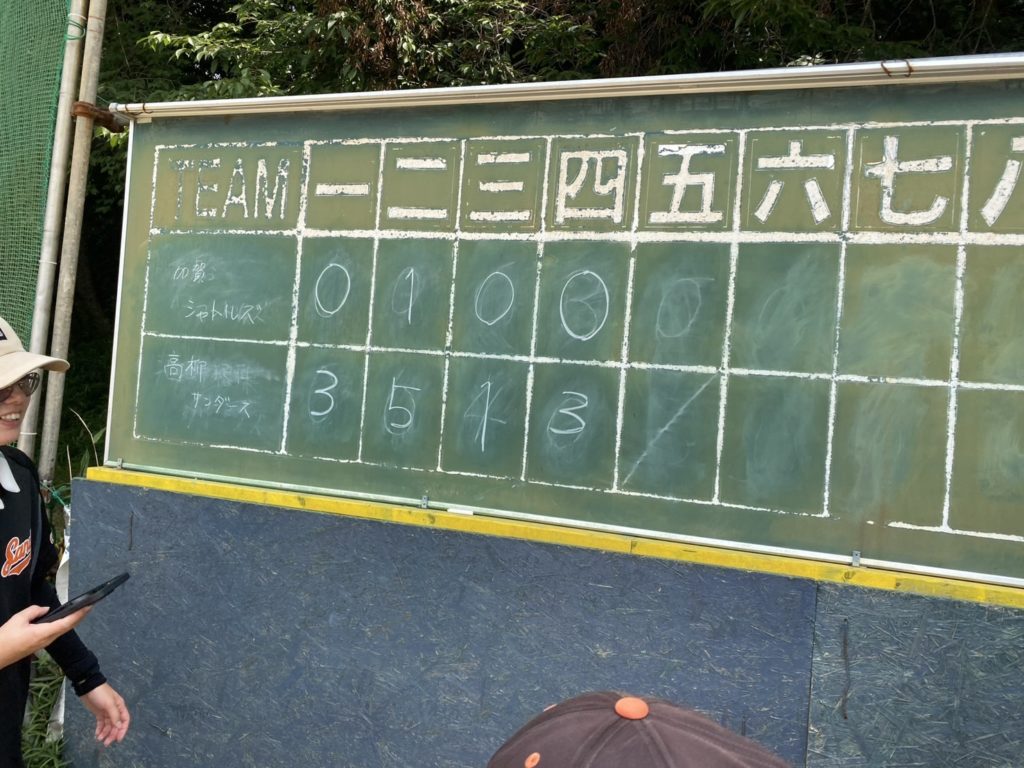強いチーム相手によく頑張りました。今日の試合は、守りでレフト、センター、ライトフライアウトがありました。特にライトは抜ければ長打になる当たりをランニングキャッチ!盛り上がりました。