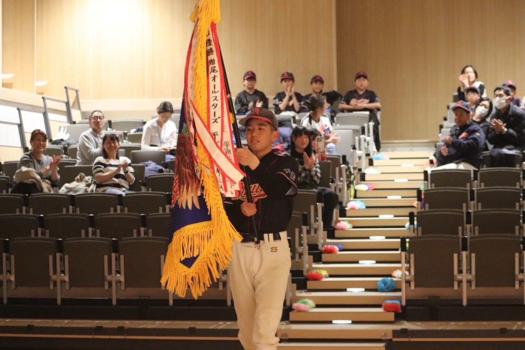 その後はいよいよ…卒団式の始まりです。まずは卒団生入場。6年生大会の優勝旗やトロフィーを持って入場!大きな拍手に包まれていました。👏